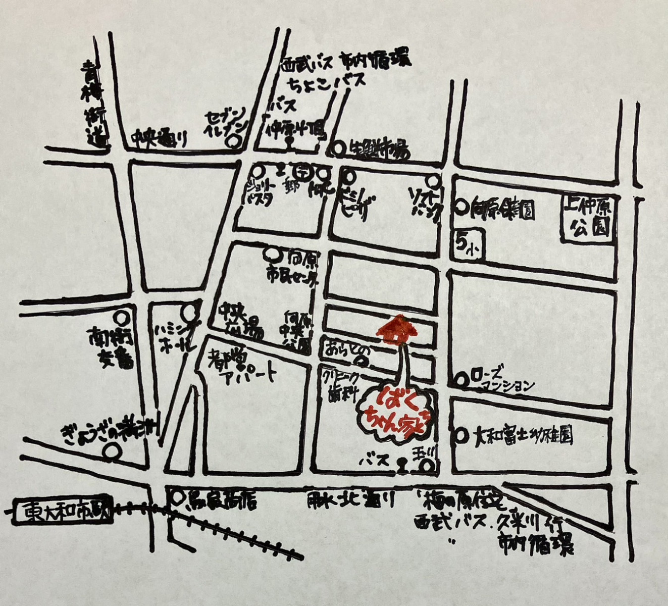 ○ちょこバス「仲原四丁目」バス停より徒歩10分